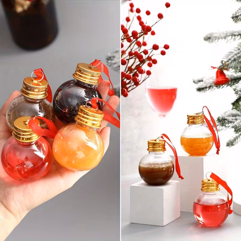 - Clear christmas ornaments fillable christmas booze balls christmas fillable booze tree ornaments clear plastic xmas booze pendant ball for xmas party. you can hang them on your tree to enjoy them around christmas or use them as place setting decorations at your table
